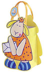 Die Geschenktüte für Schaffreunde weist eine äußere Breite von 23,5 cm und eine äußere Höhe von 33,5 cm auf. Die zwei Außenseiten der Tasche verbergen mit Ihrem orange-blau-gelben Schafmotiv die eigentliche gelbe Papiertasche zur Beherbergung kleiner Schätze mit einer Breite von 10,5 cm, einer Tiefe von 14 cm und einer Höhe von 24,5 cm.