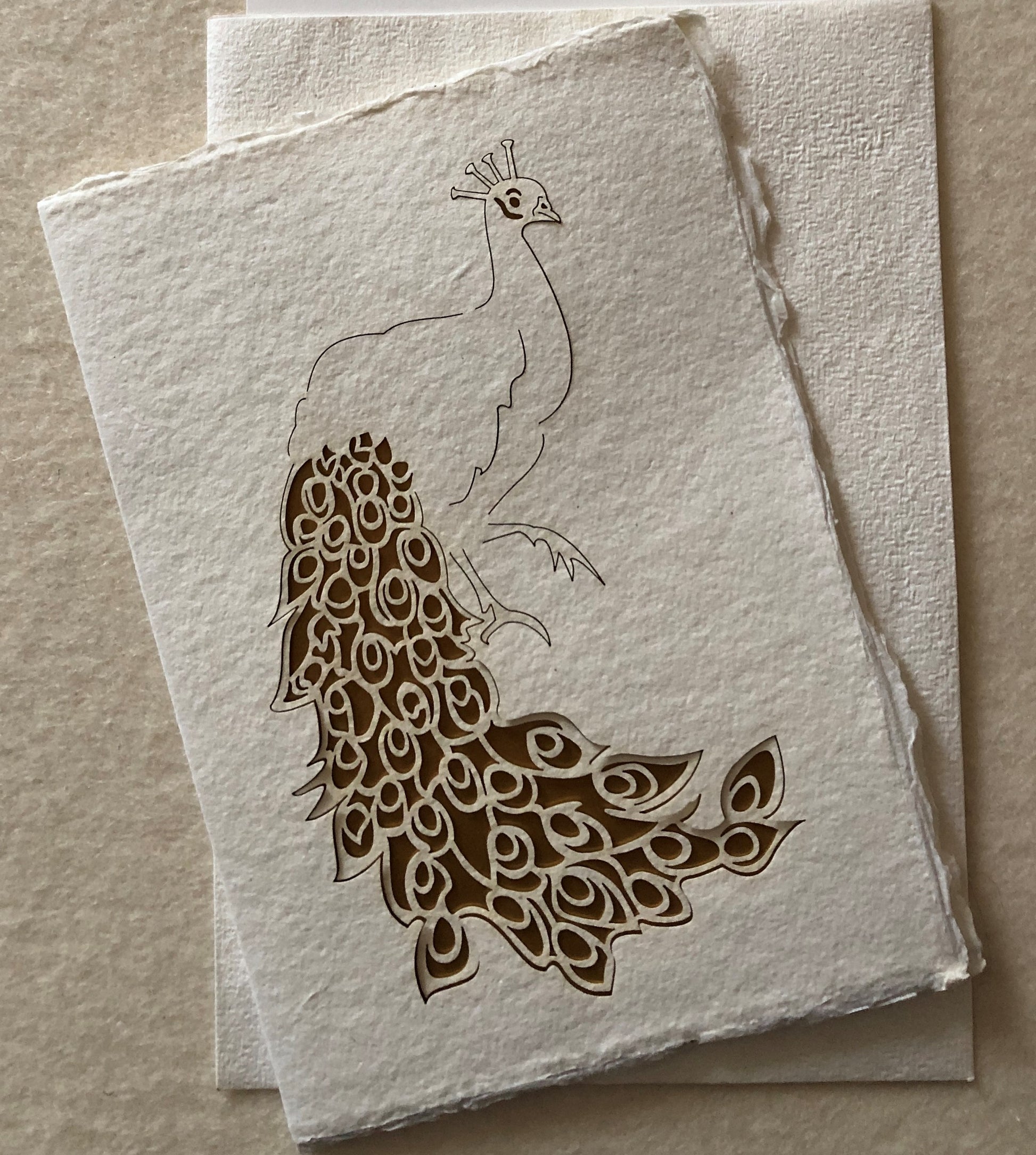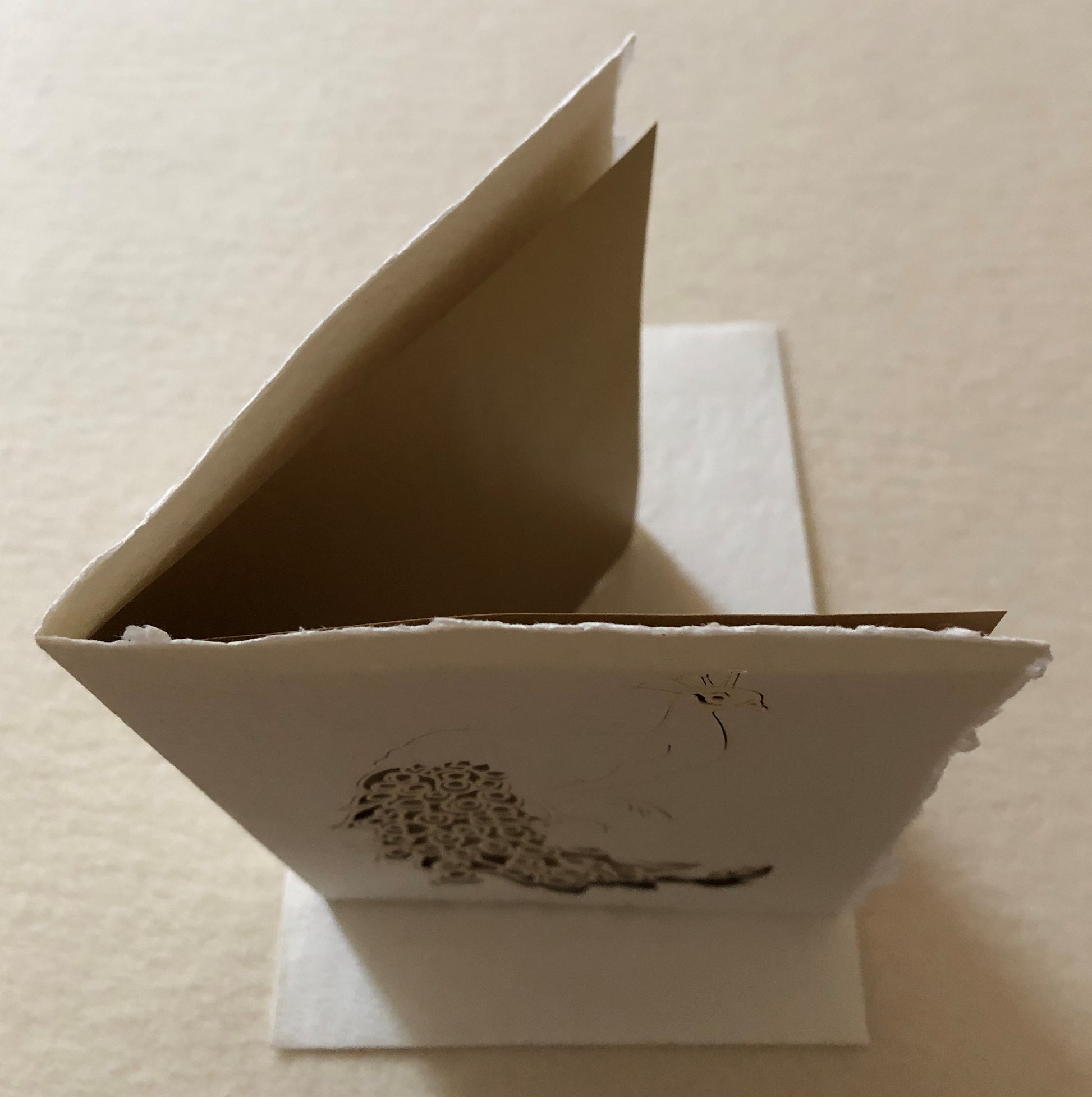 Birdy Pfau Bütten-Doppelkarte, Einleger gold